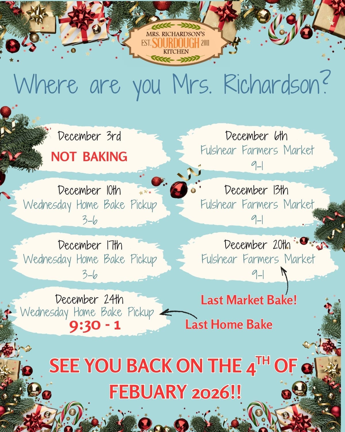 At Mrs. Richardson’s Sourdough Kitchen, we’re dedicated to making it easy for you to enjoy our freshly baked, traditionally crafted sourdough bread and treats.